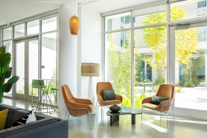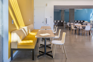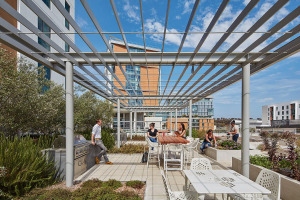 The Hyphn furniture and technology design teams collaborated closely with Longfellow and various partners to plan, create, and source a comprehensive range of indoor/outdoor furniture and technology elements for a fresh tenant amenity area.