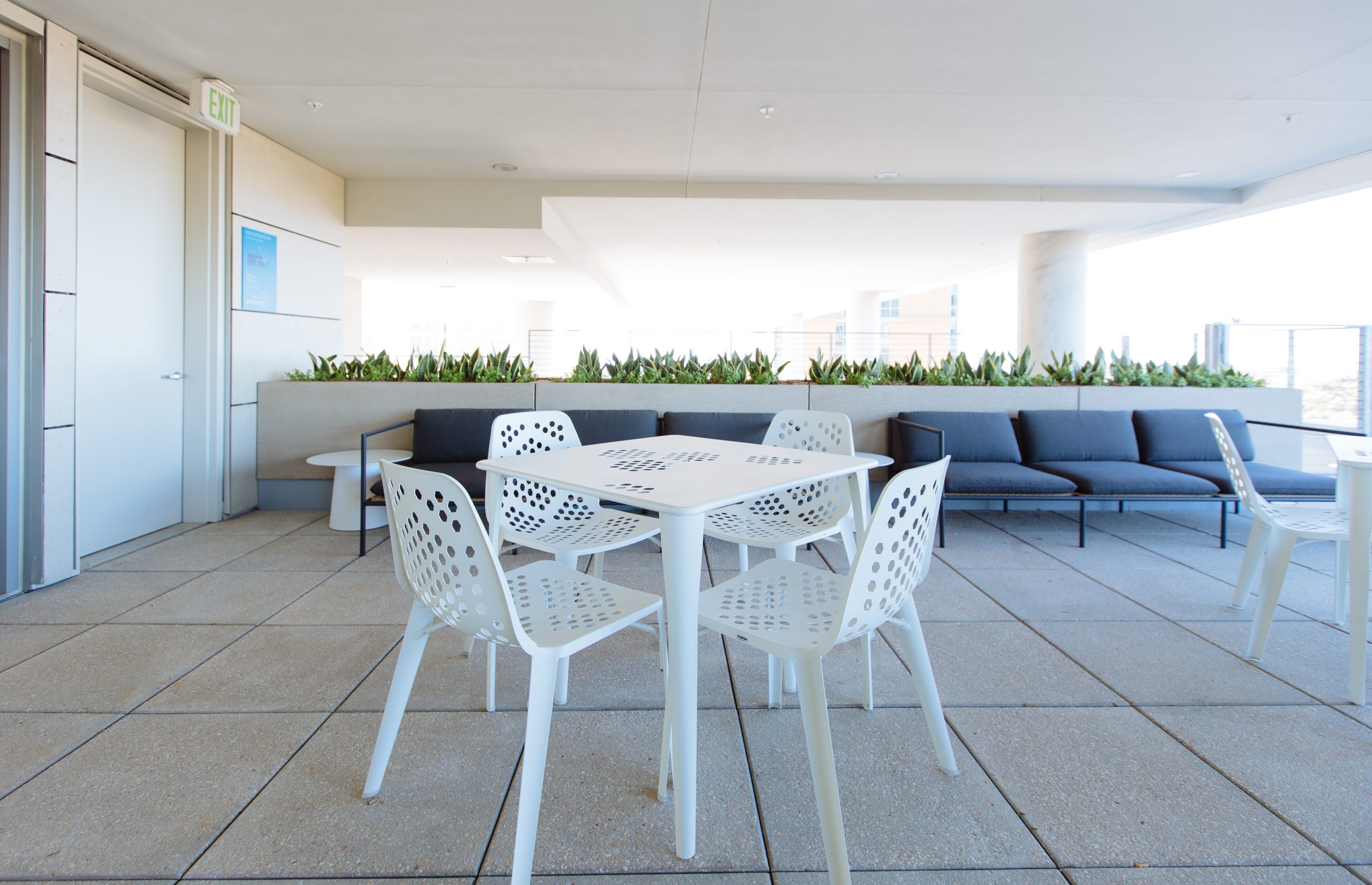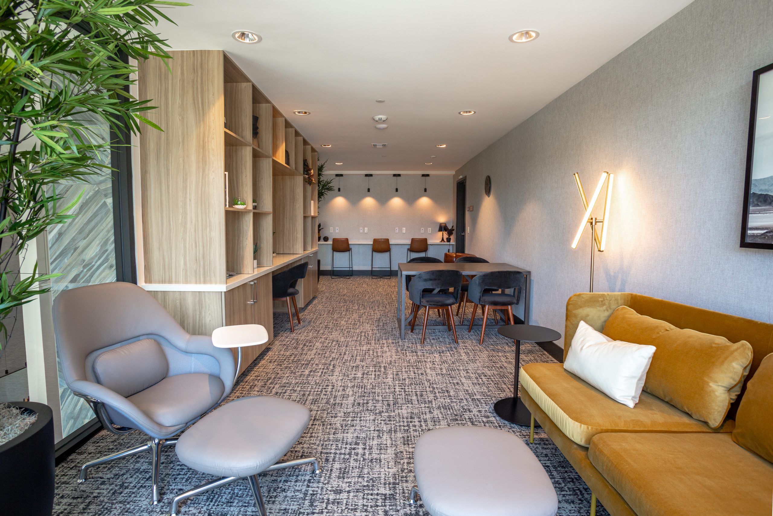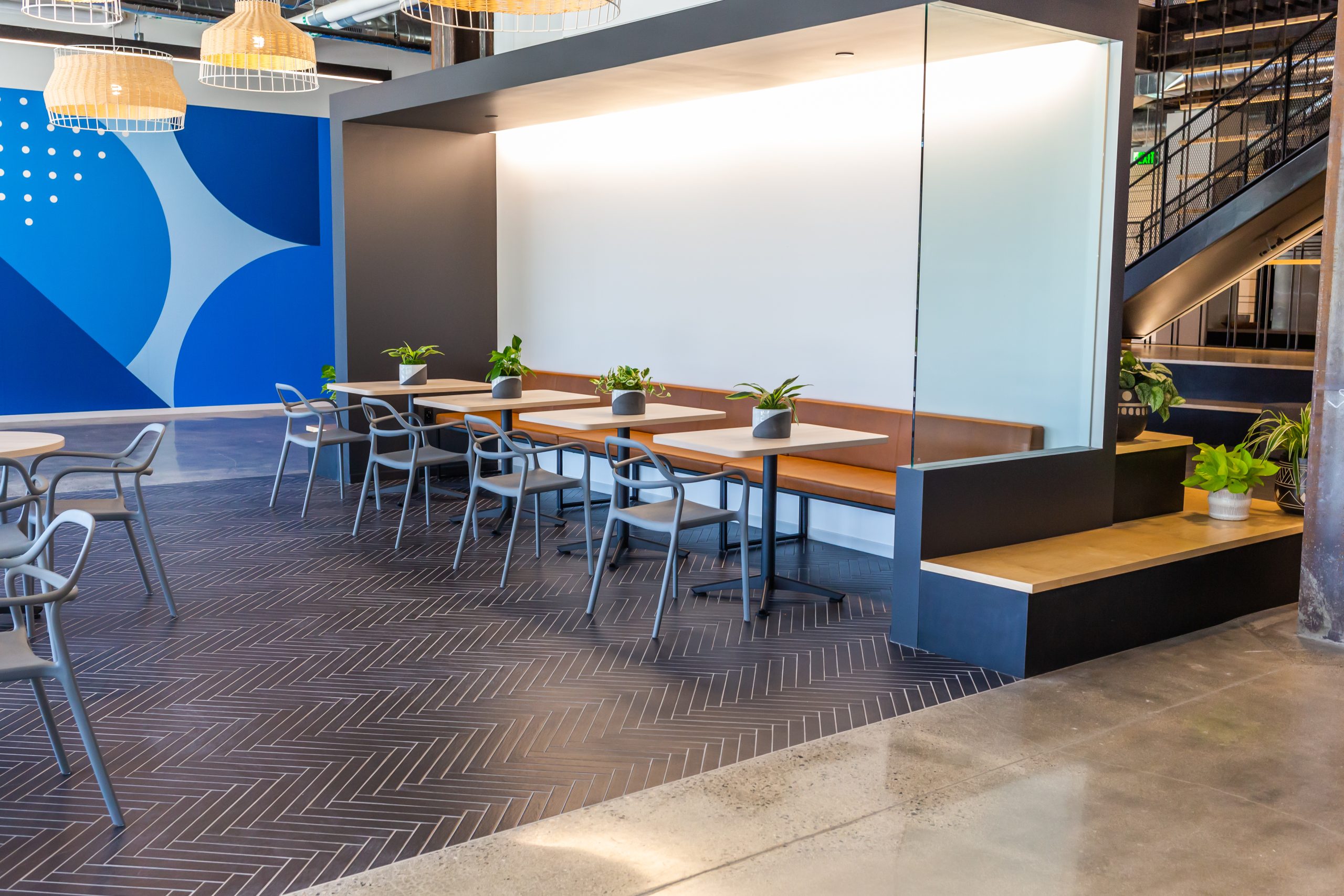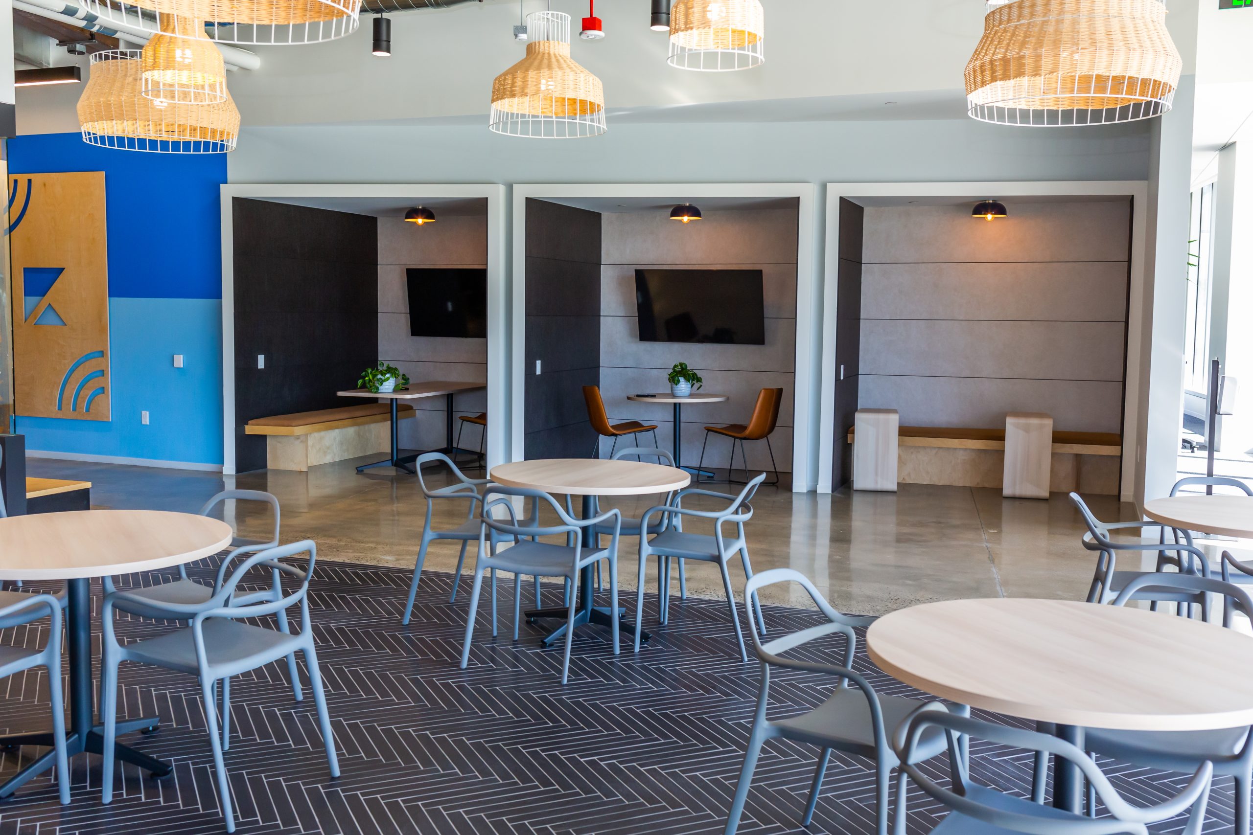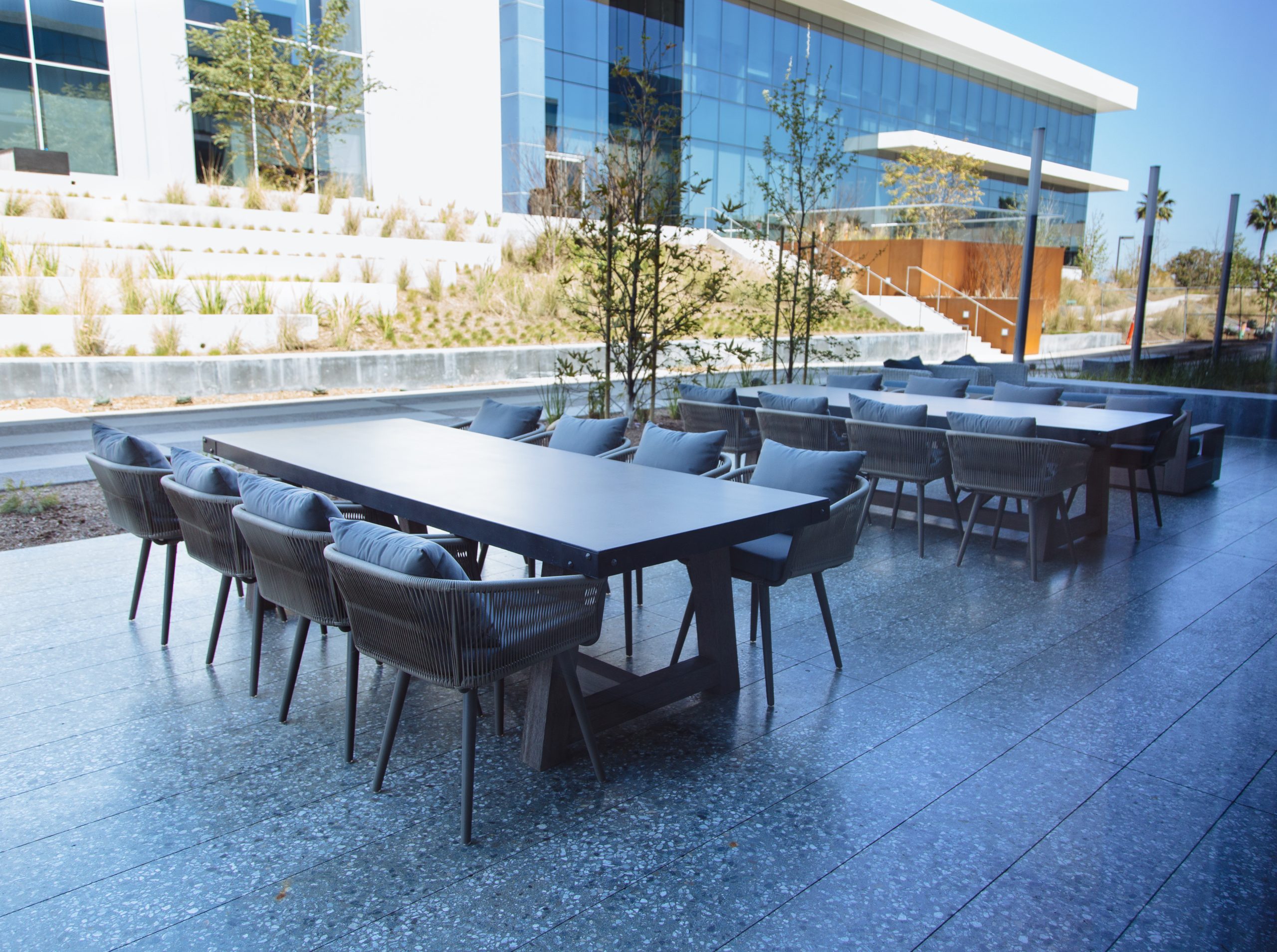The Hyphn furniture and technology design teams collaborated closely with Longfellow and various partners to plan, create, and source a comprehensive range of indoor/outdoor furniture and technology elements for a fresh tenant amenity area.