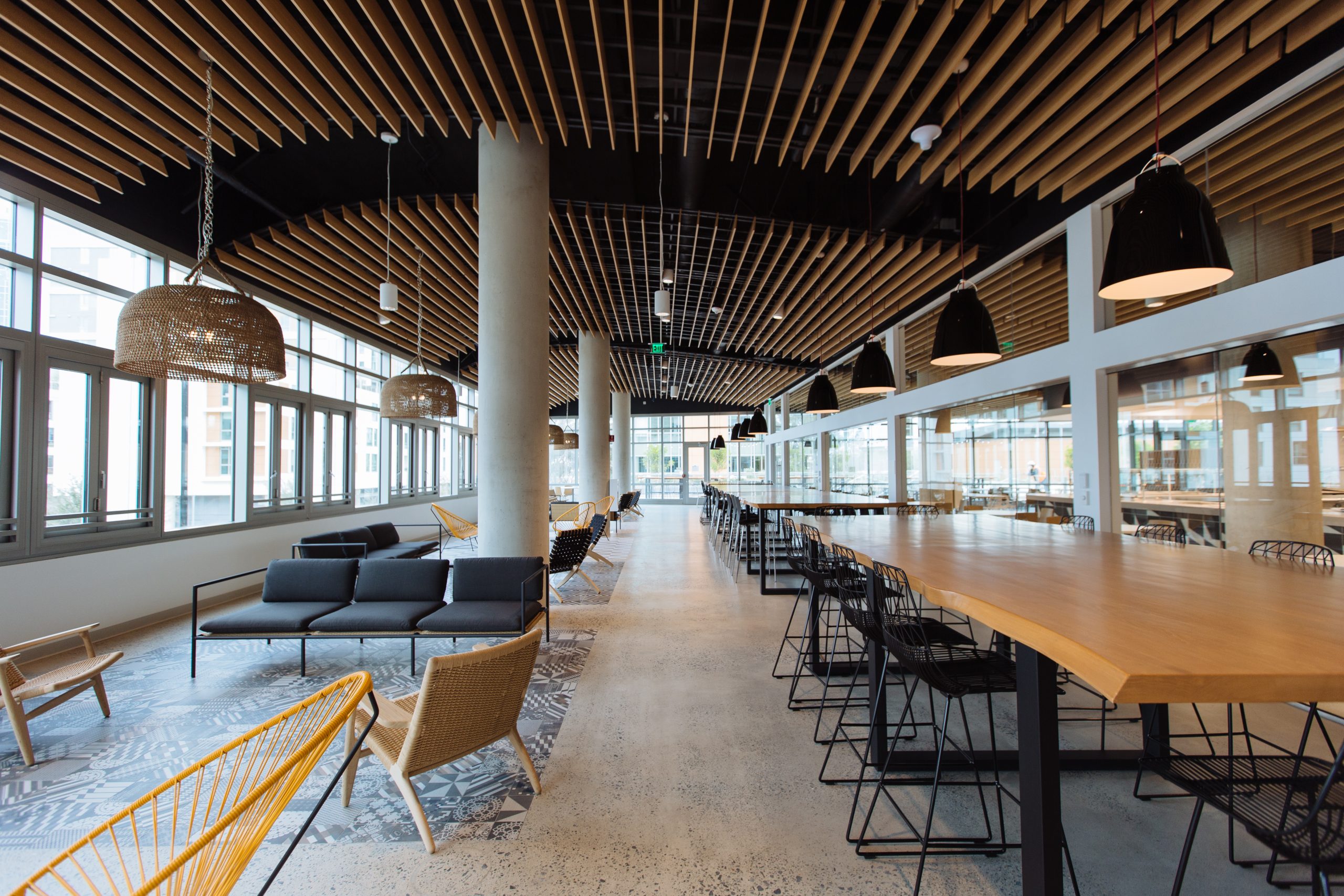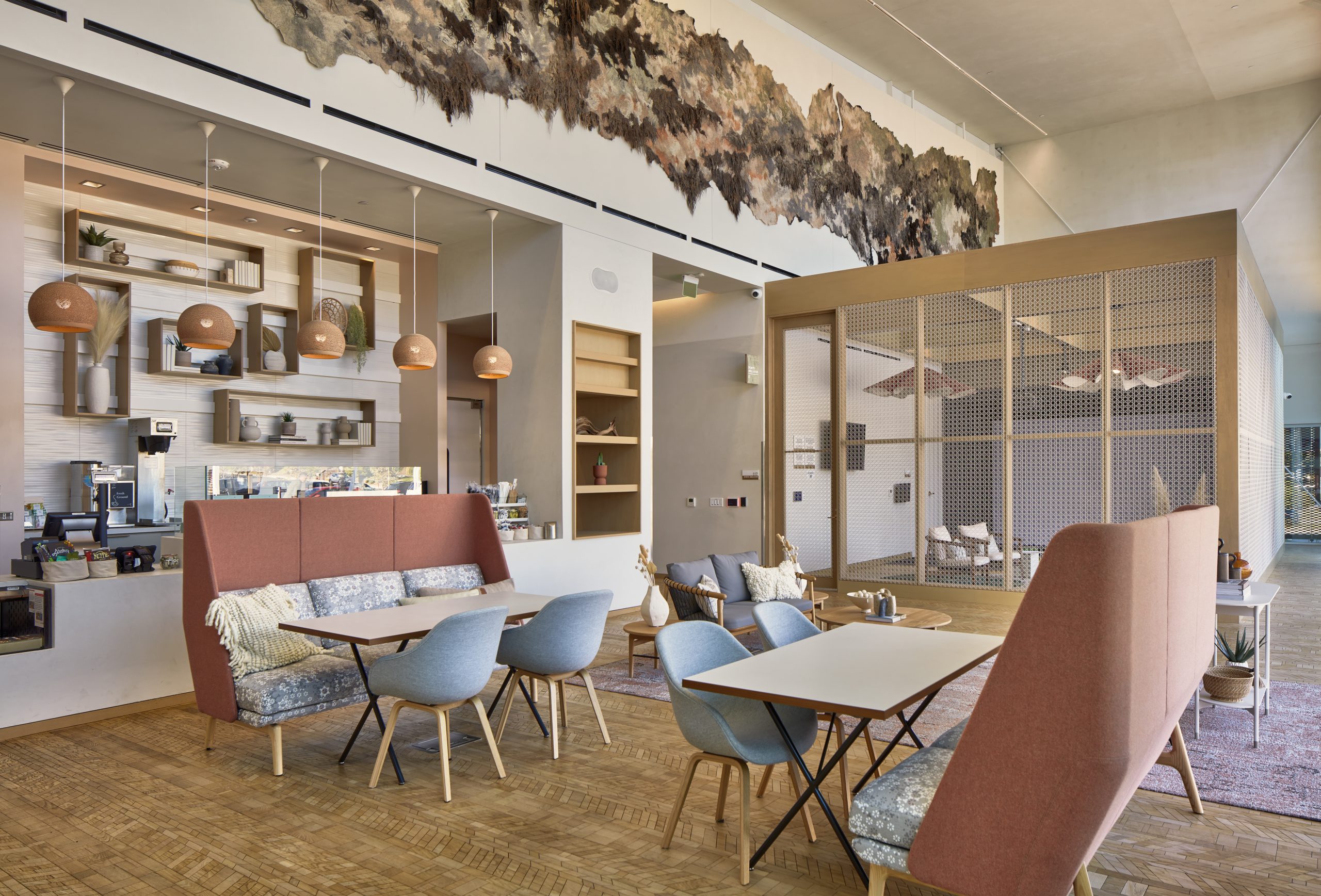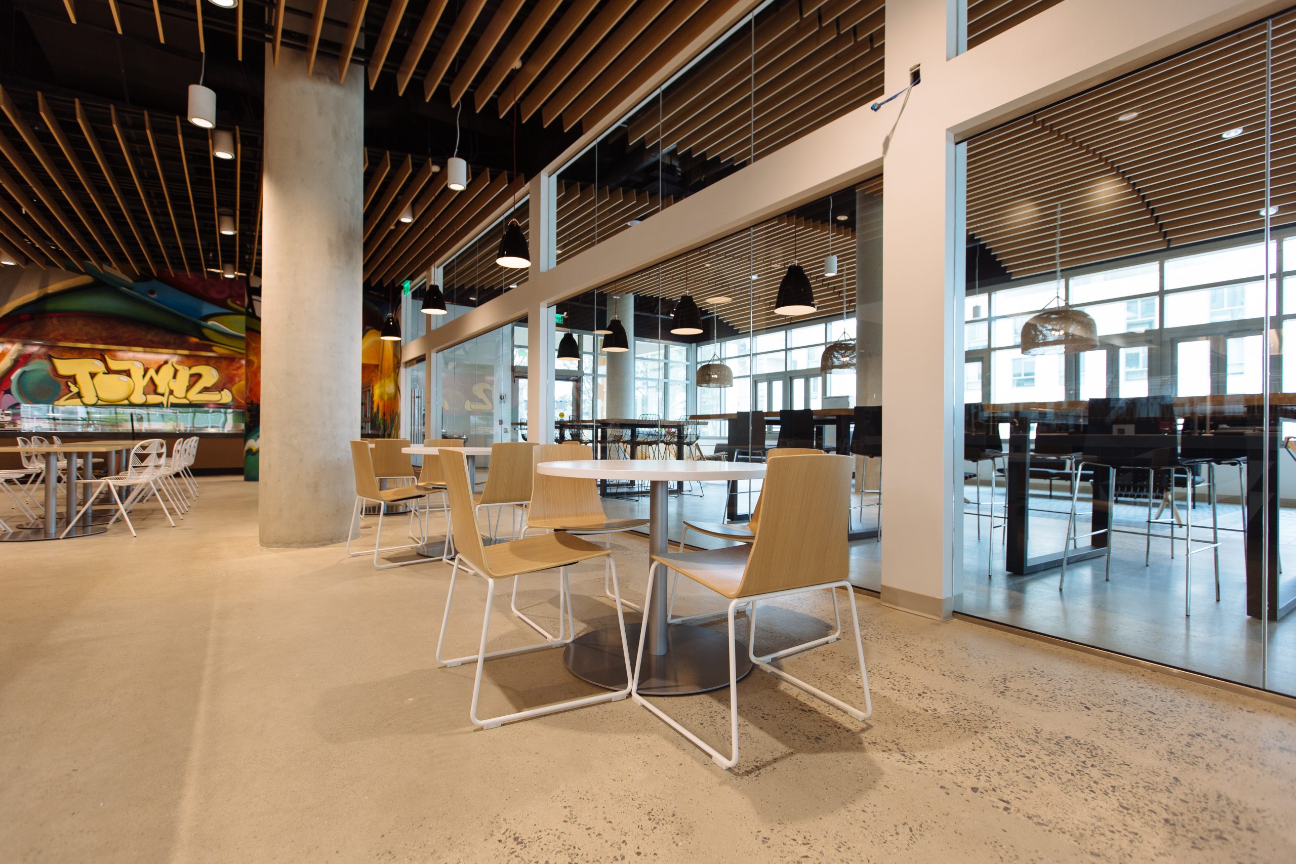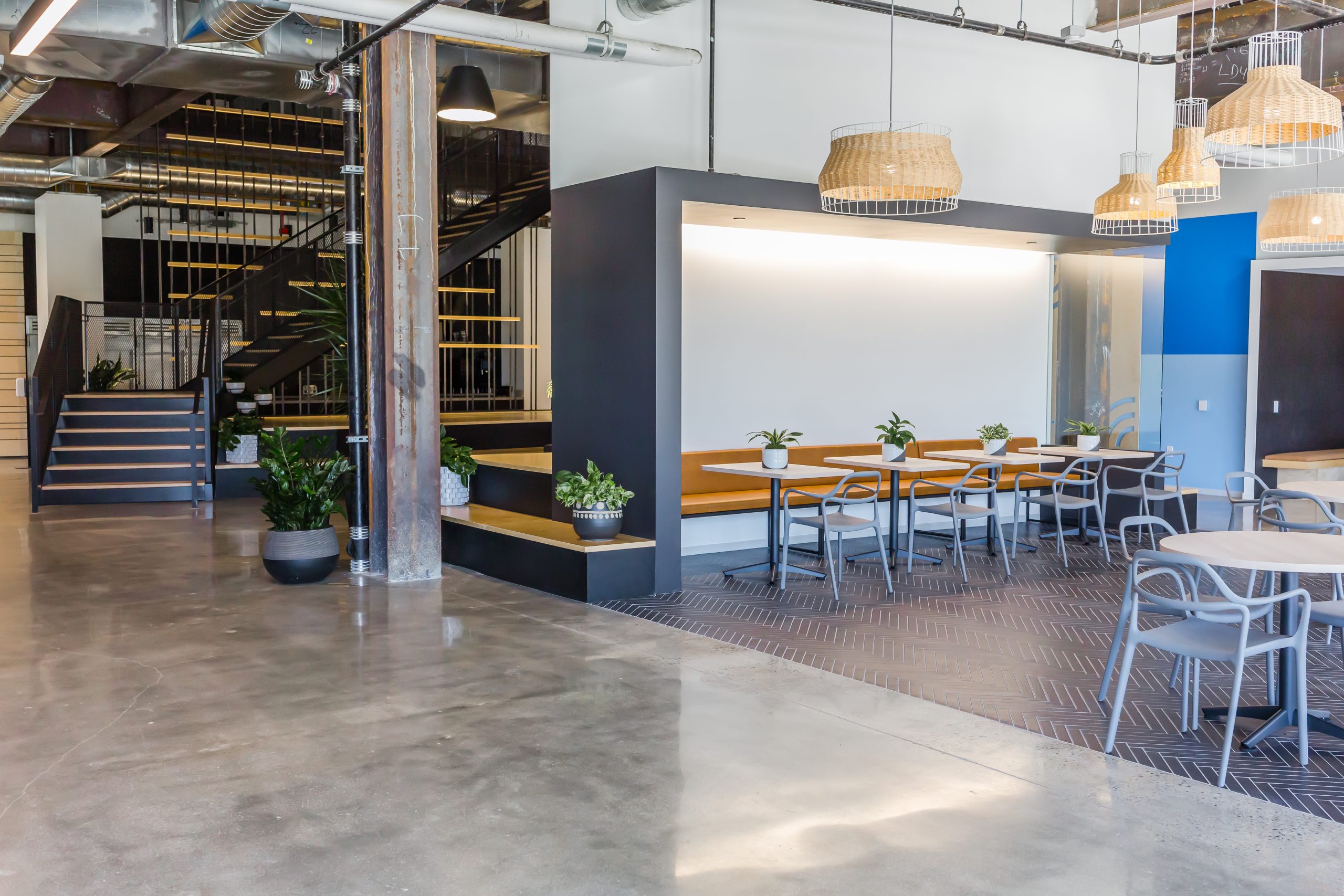 The Hyphn furniture and technology design teams collaborated closely with Longfellow and various partners to plan, create, and source a comprehensive range of indoor/outdoor furniture and technology elements for a fresh tenant amenity area.