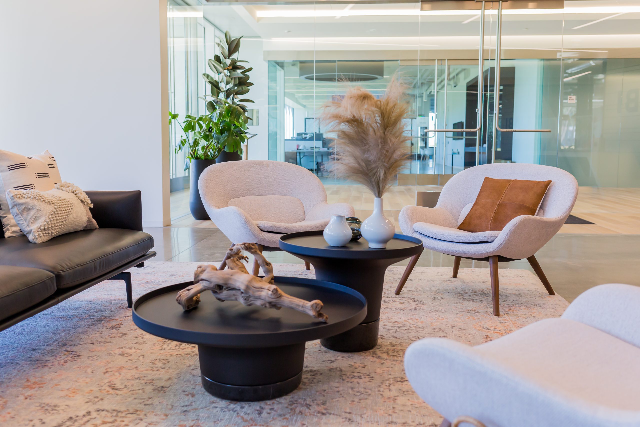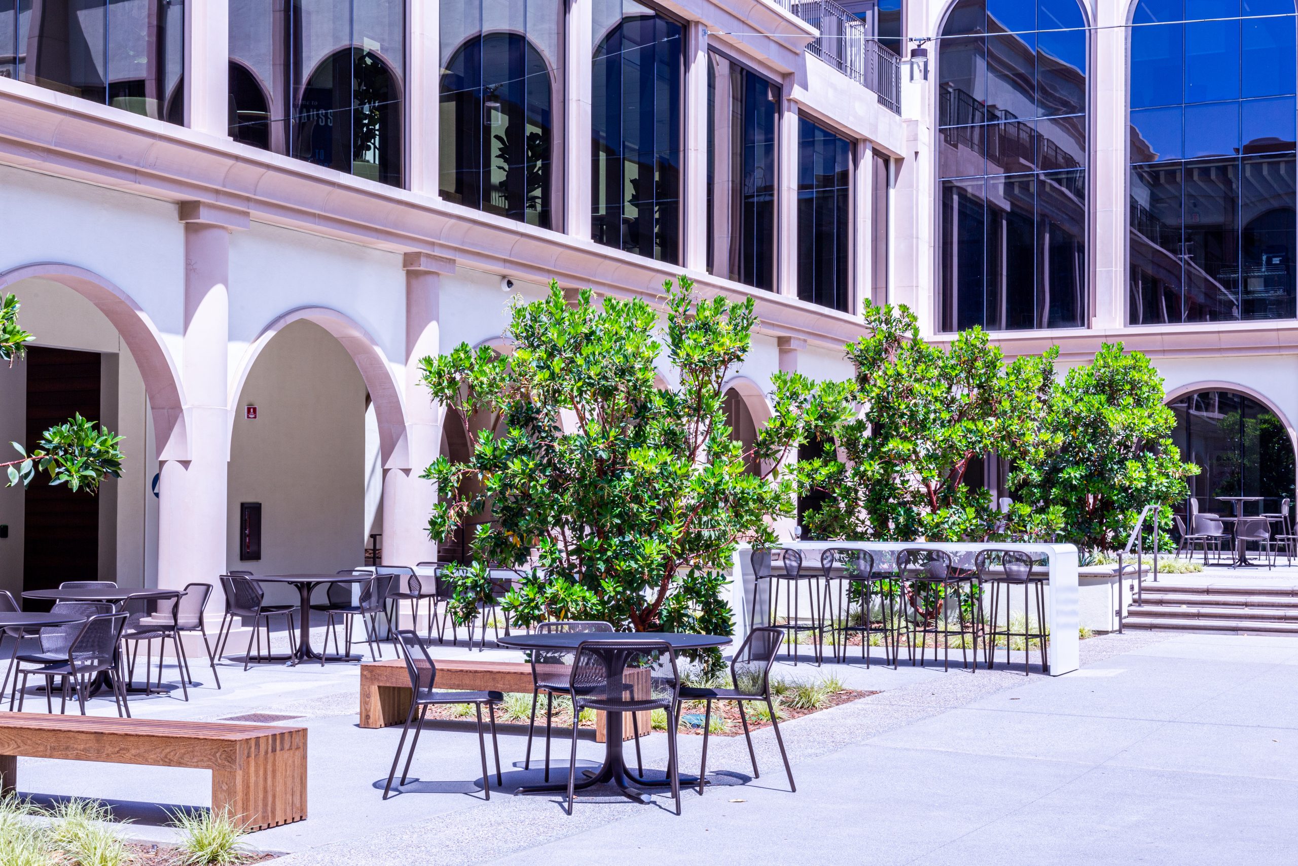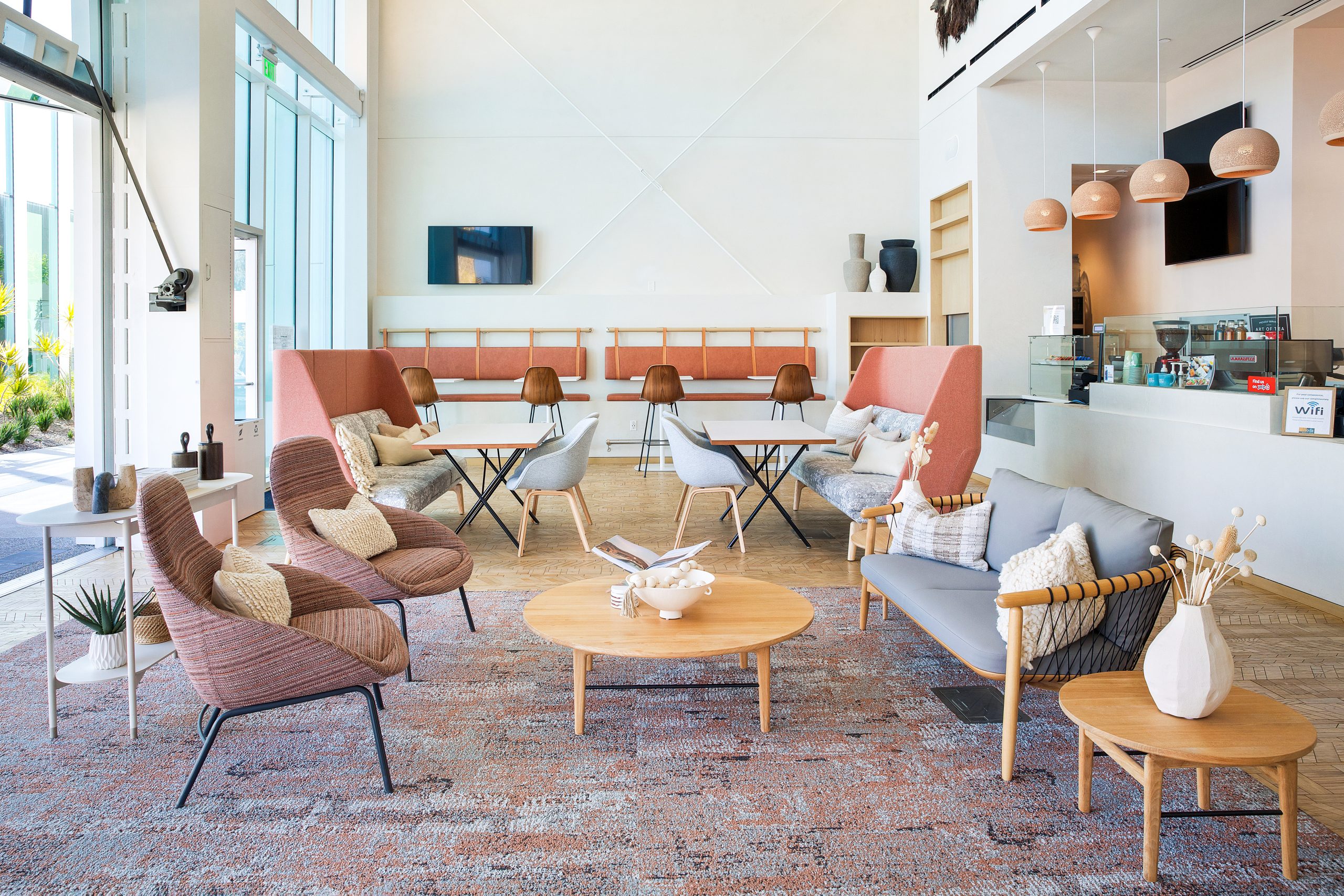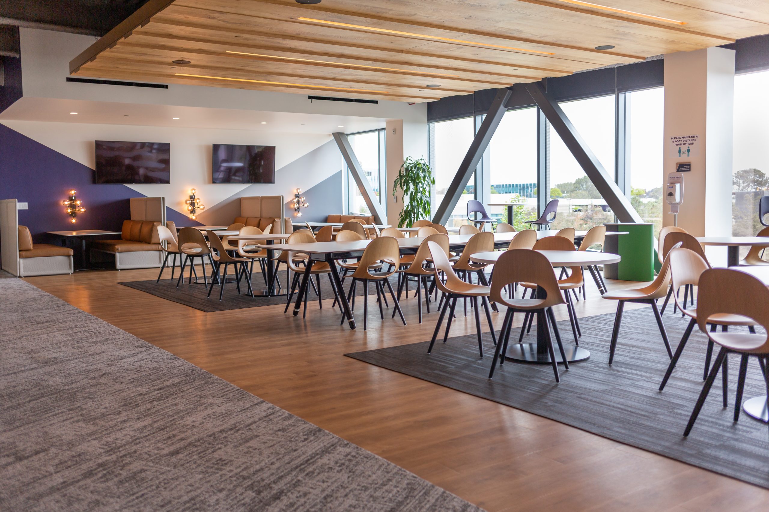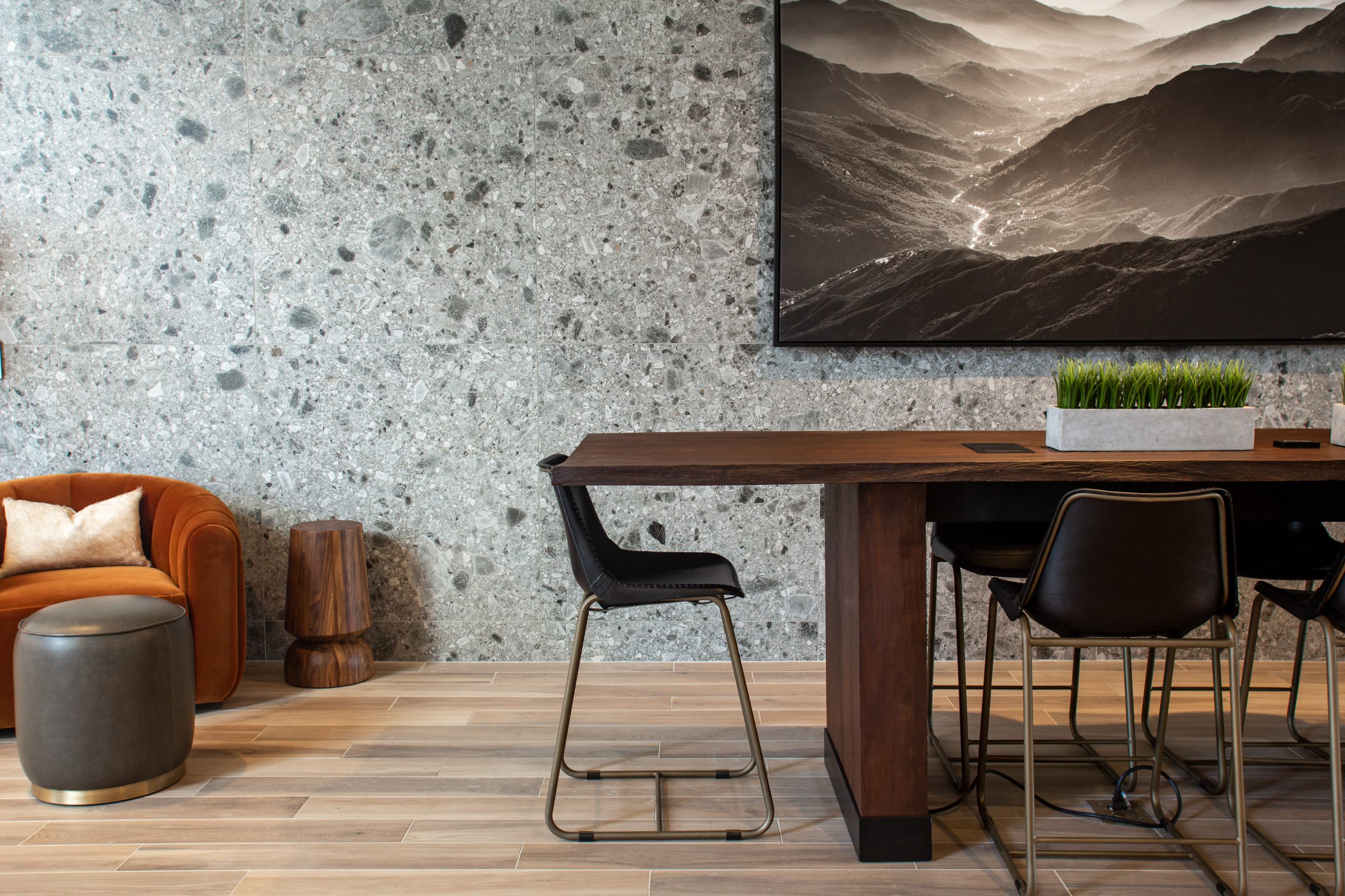 The Hyphn furniture and technology design teams collaborated closely with Longfellow and various partners to plan, create, and source a comprehensive range of indoor/outdoor furniture and technology elements for a fresh tenant amenity area.