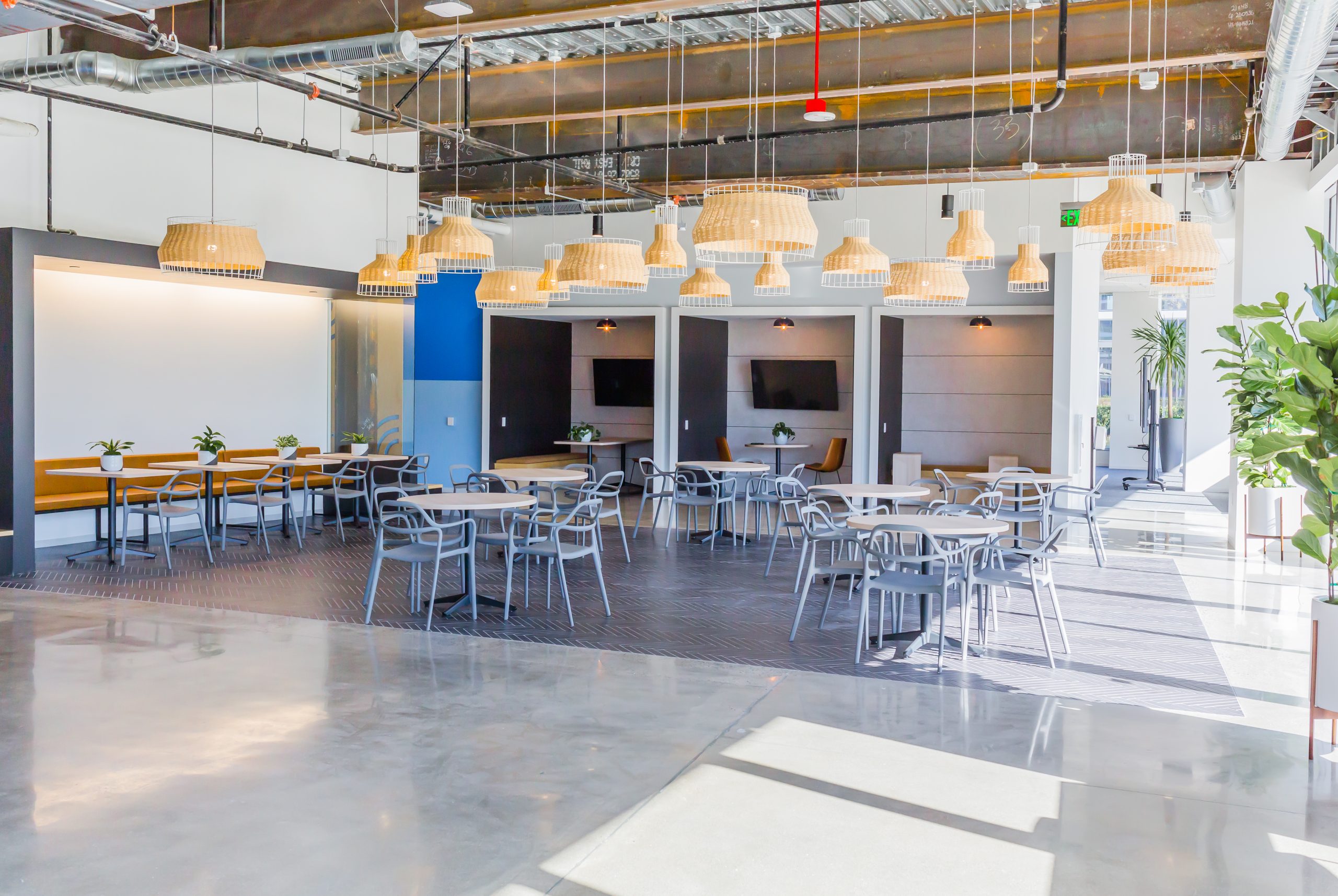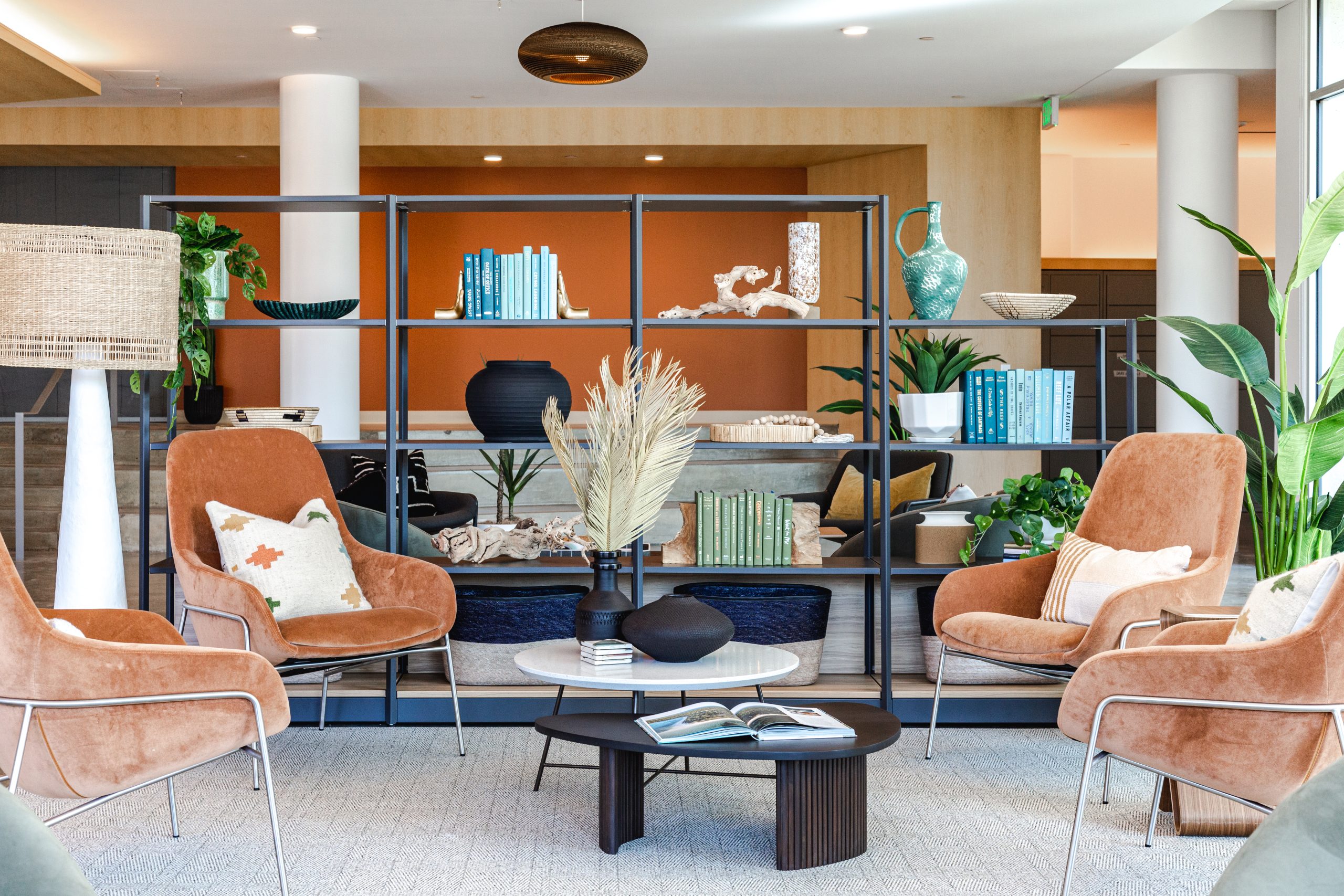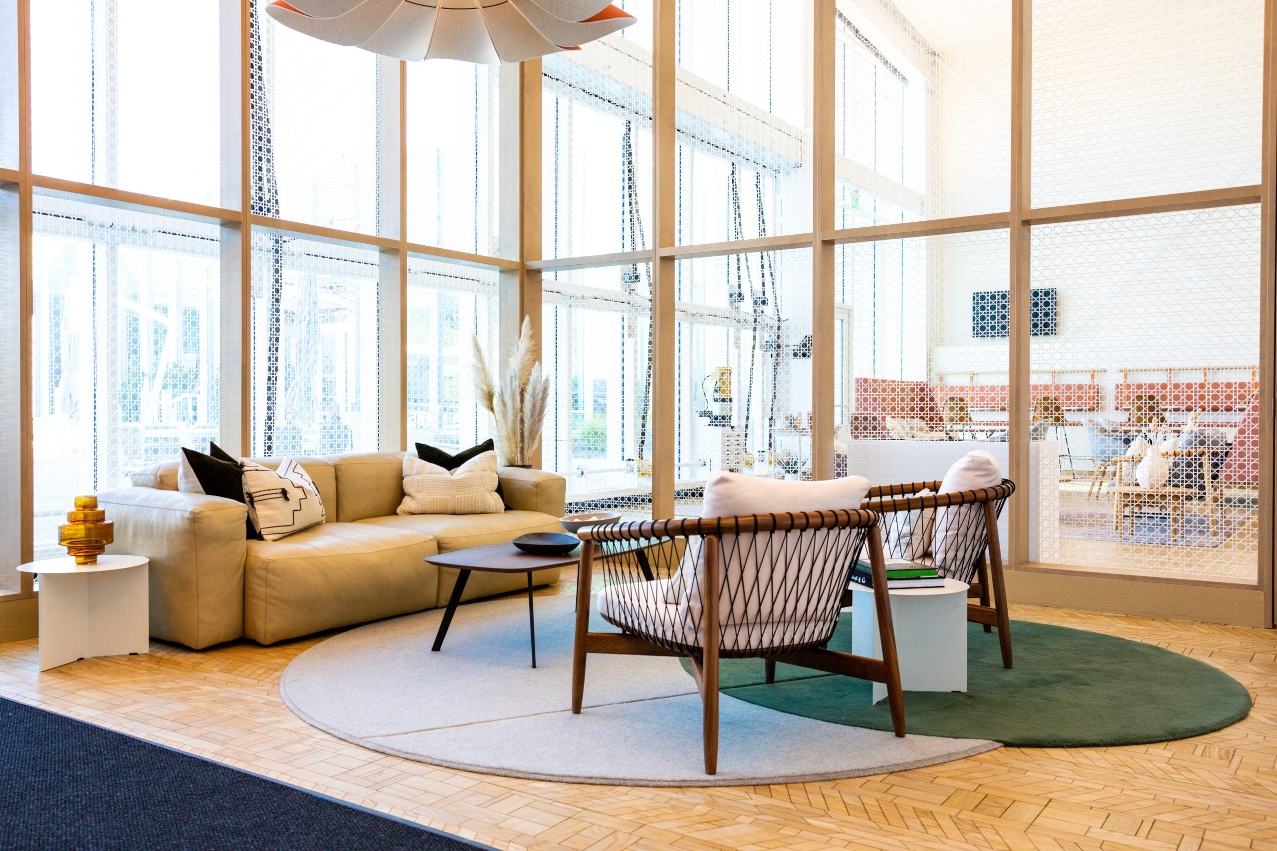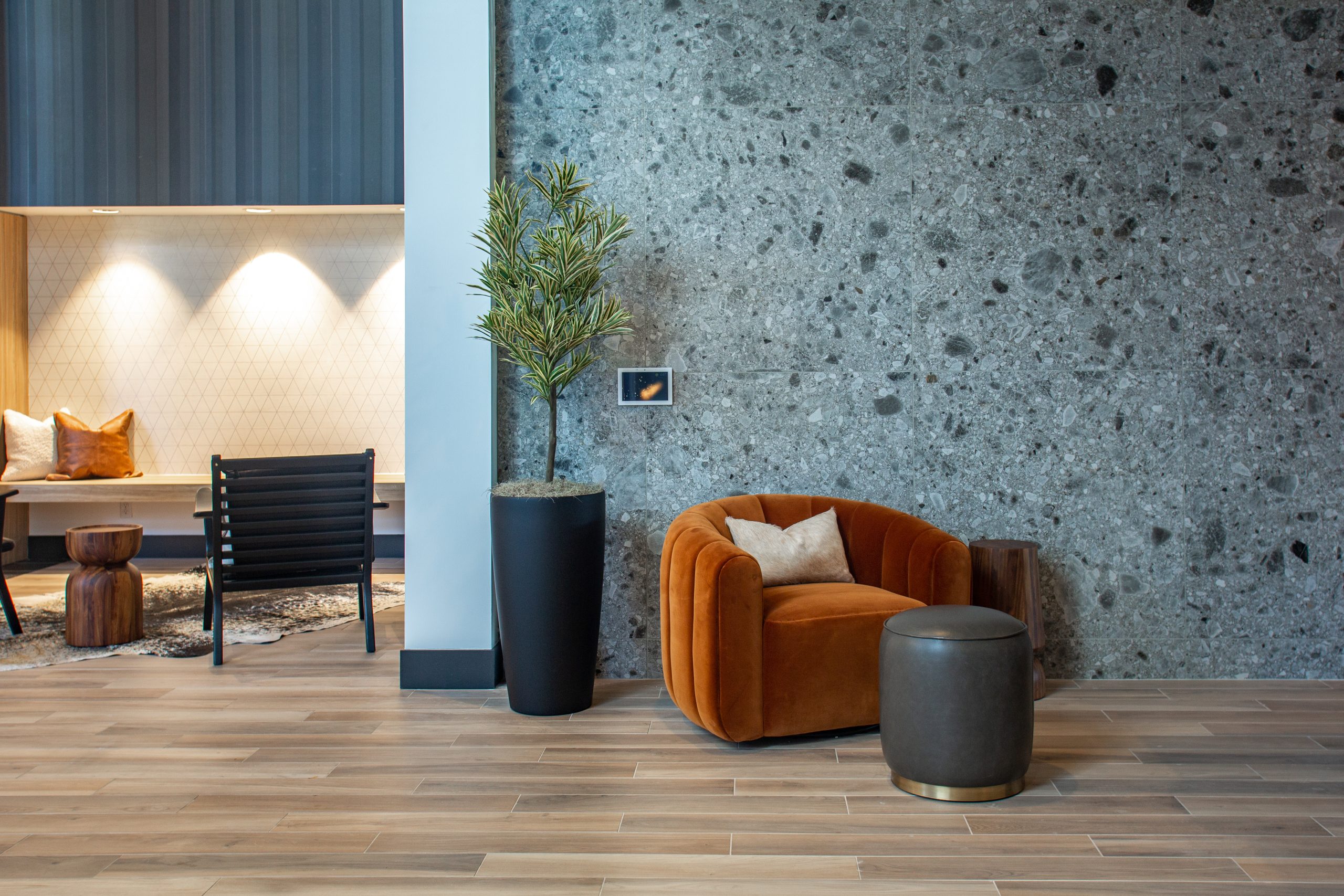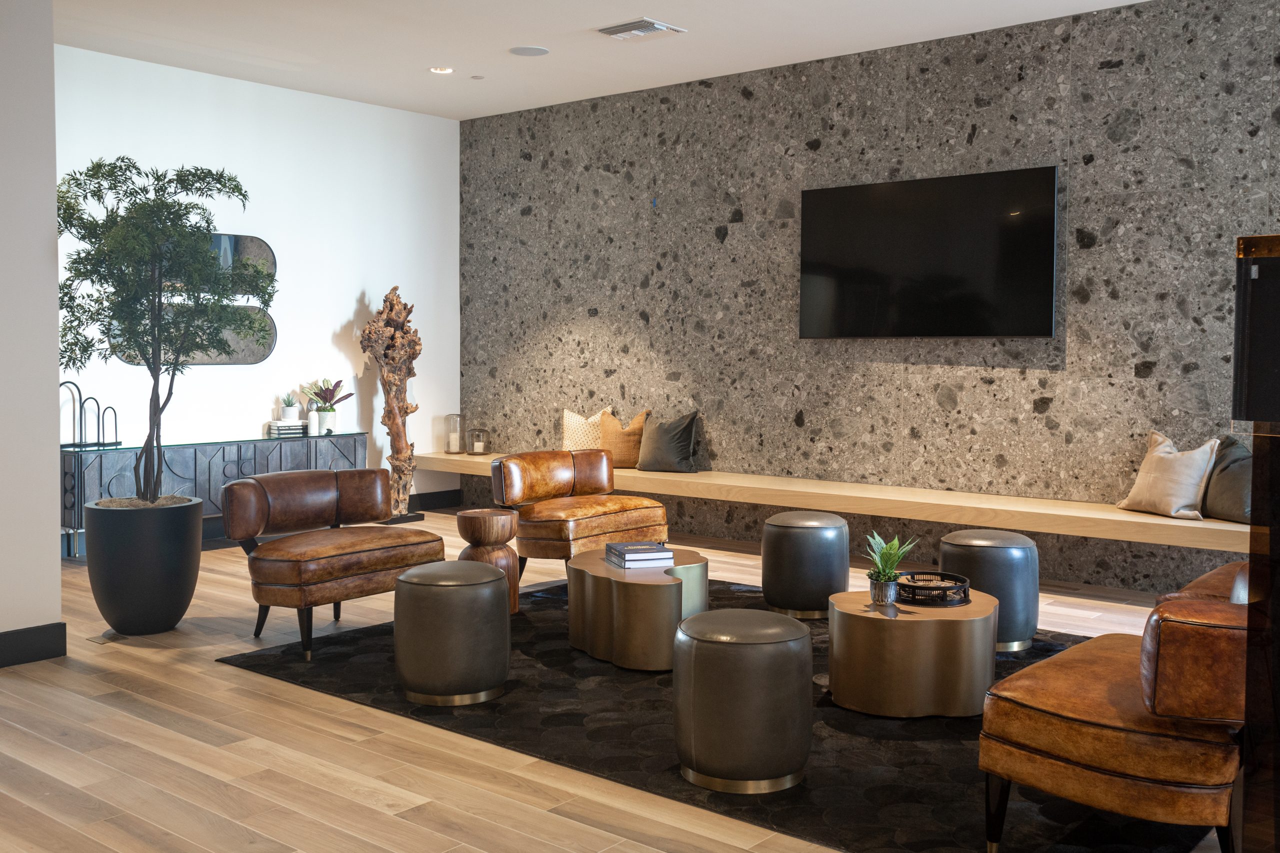 The Hyphn furniture and technology design teams collaborated closely with Longfellow and various partners to plan, create, and source a comprehensive range of indoor/outdoor furniture and technology elements for a fresh tenant amenity area.