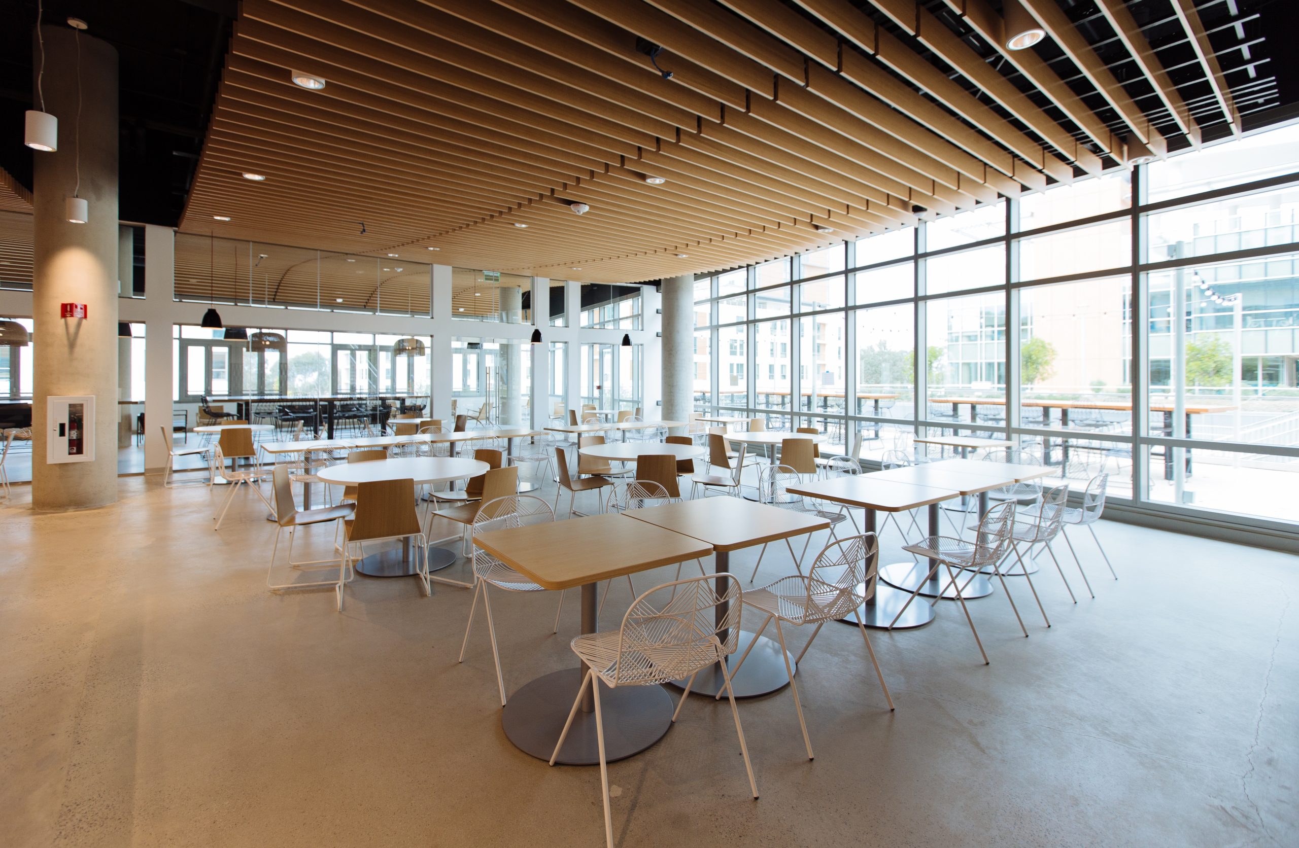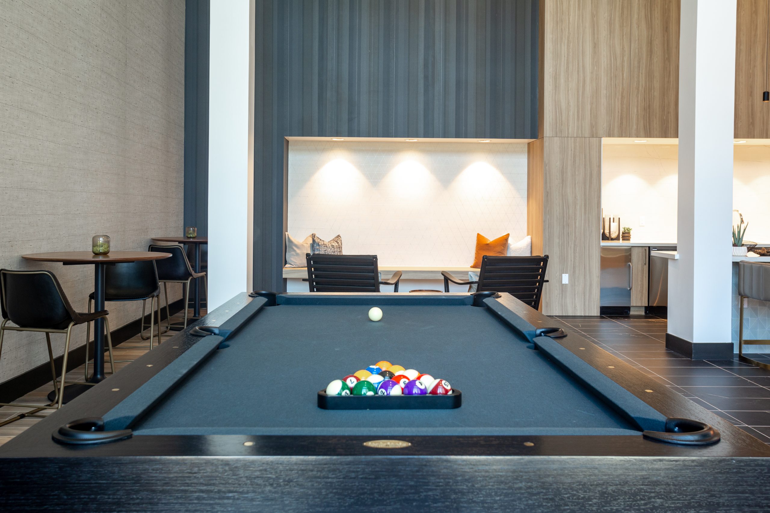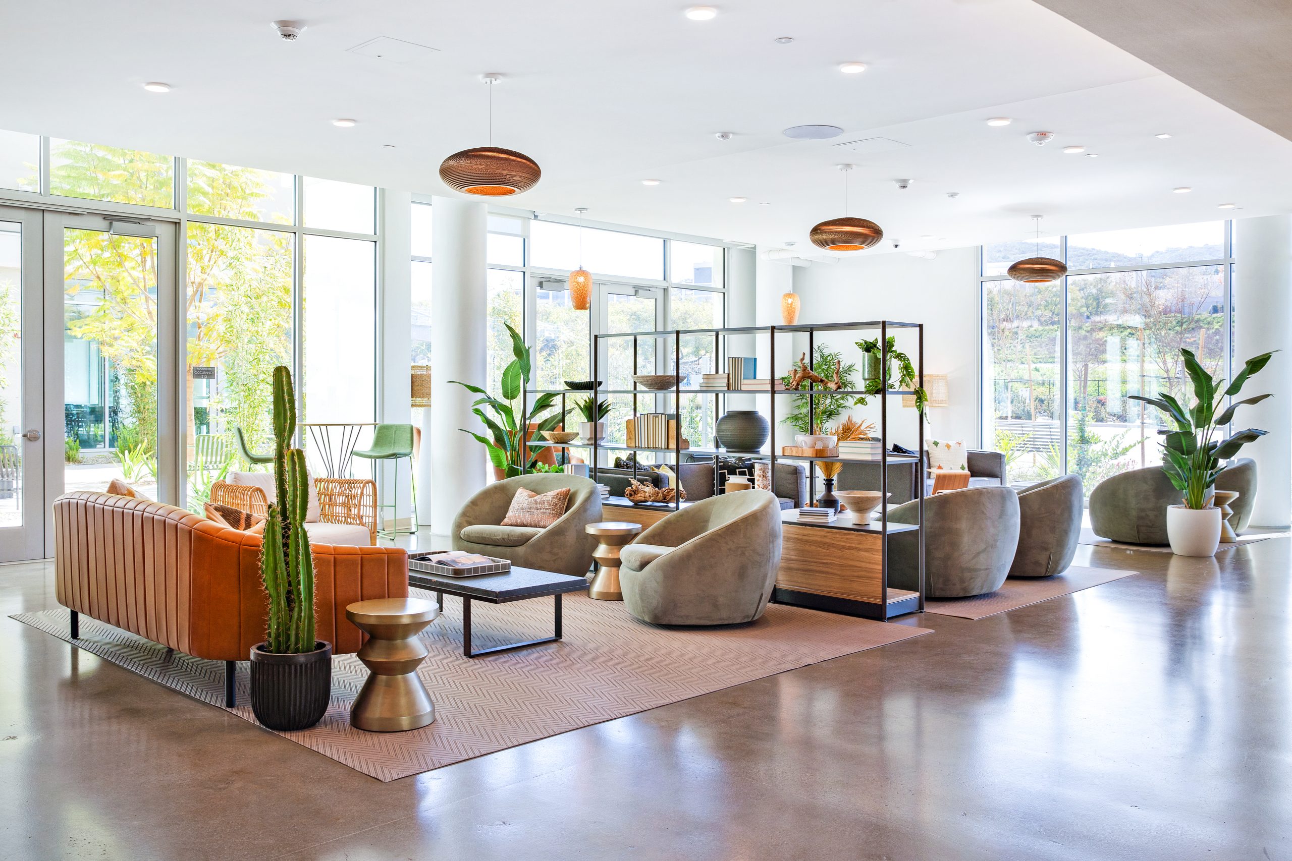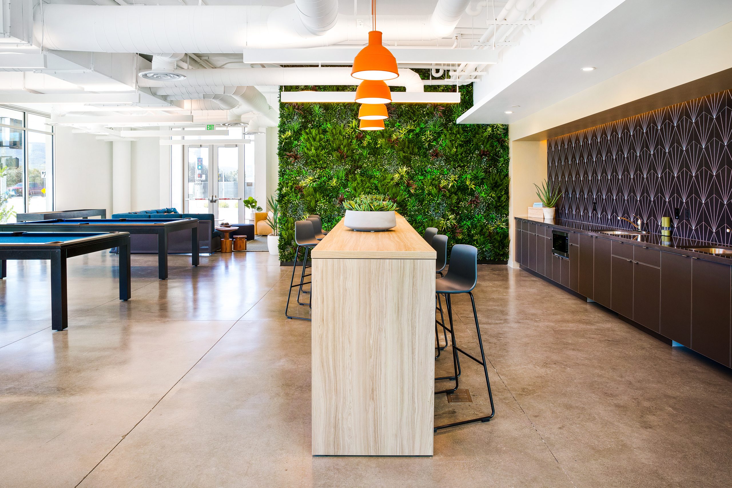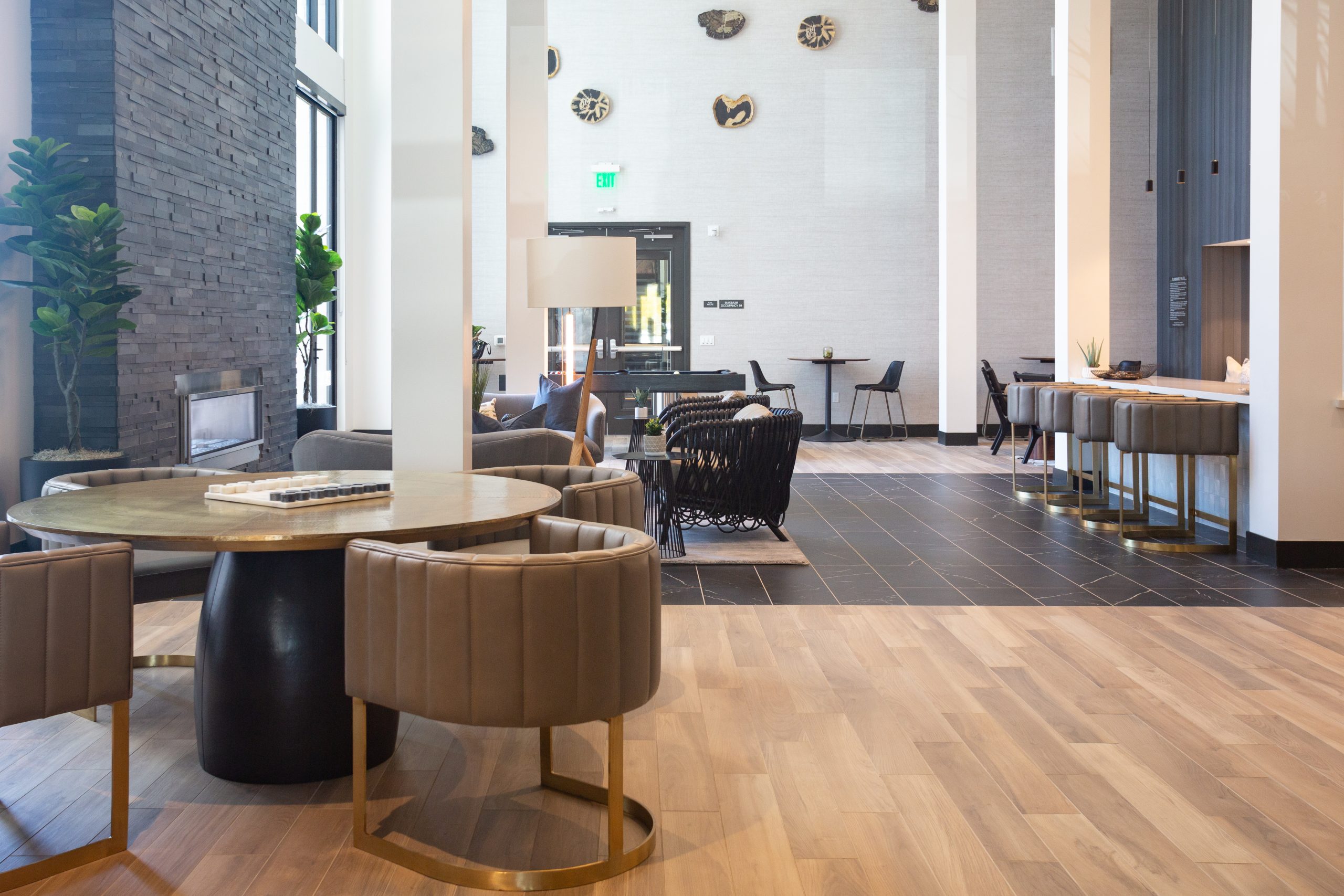 The Hyphn furniture and technology design teams collaborated closely with Longfellow and various partners to plan, create, and source a comprehensive range of indoor/outdoor furniture and technology elements for a fresh tenant amenity area.