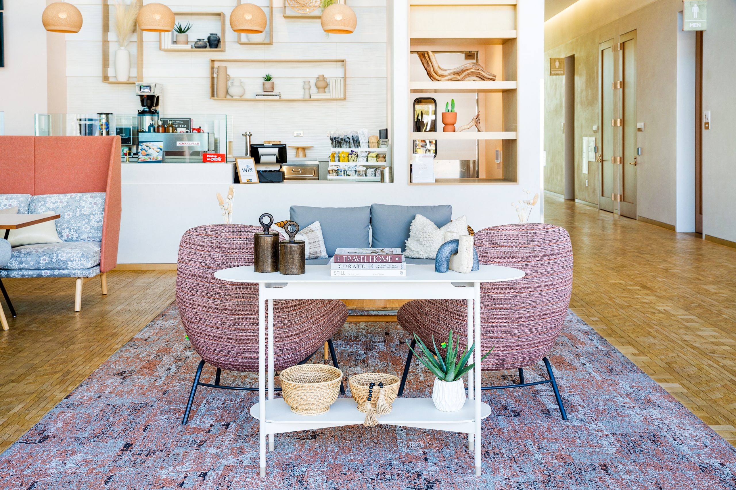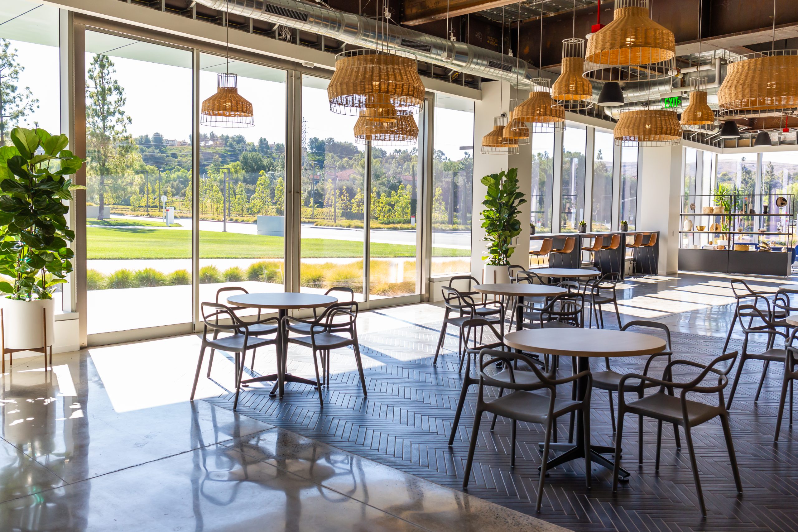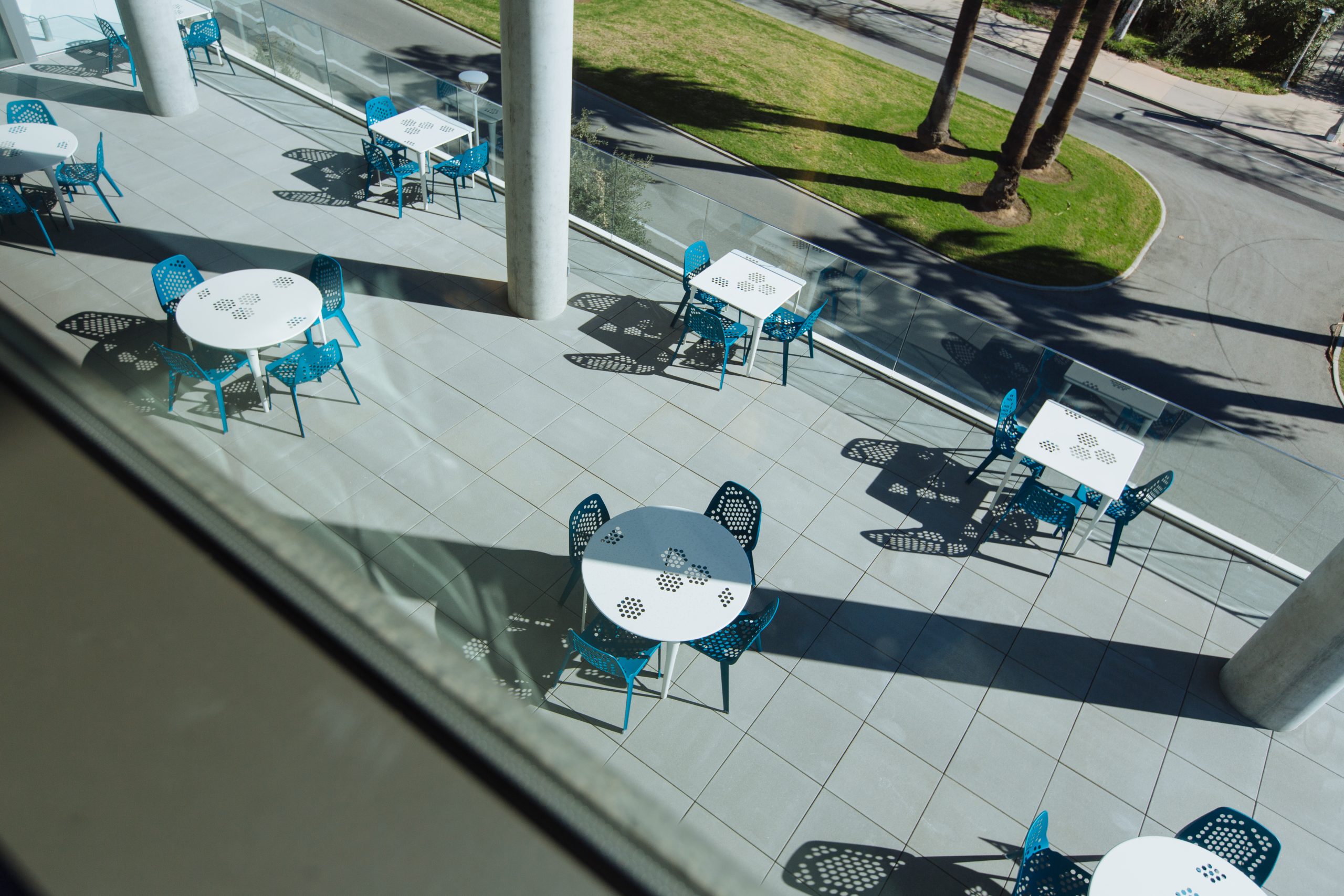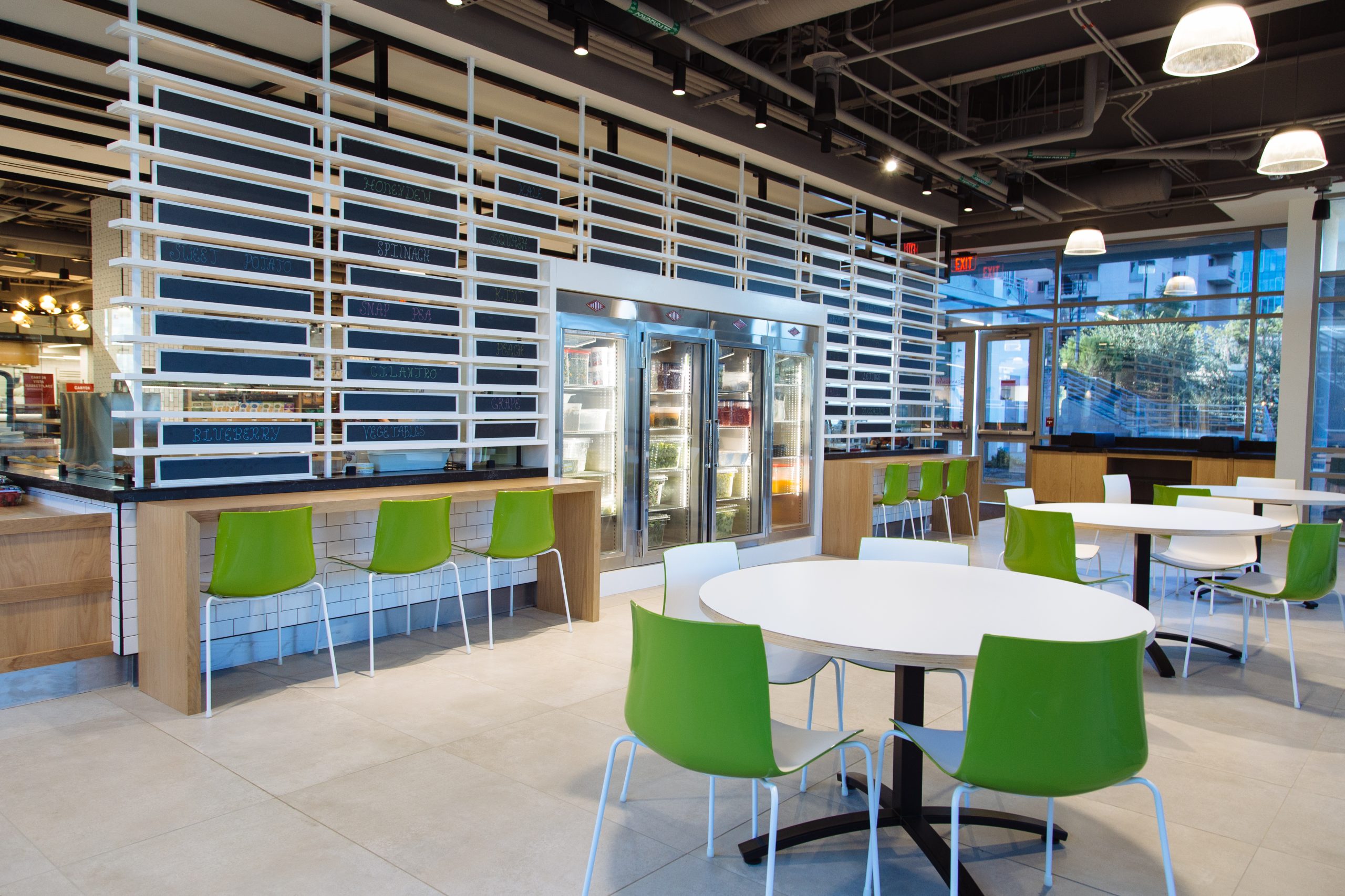 The Hyphn furniture and technology design teams collaborated closely with Longfellow and various partners to plan, create, and source a comprehensive range of indoor/outdoor furniture and technology elements for a fresh tenant amenity area.