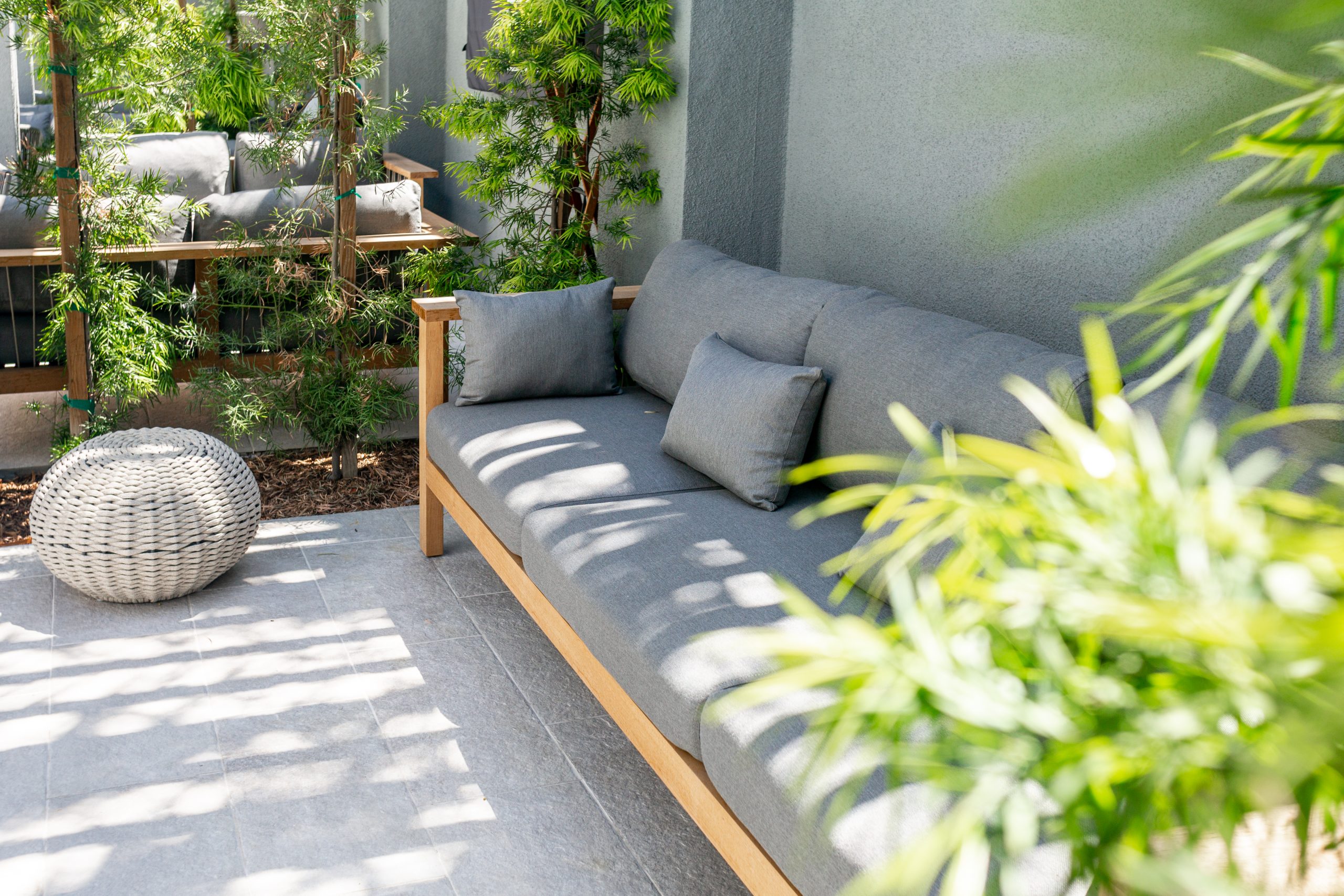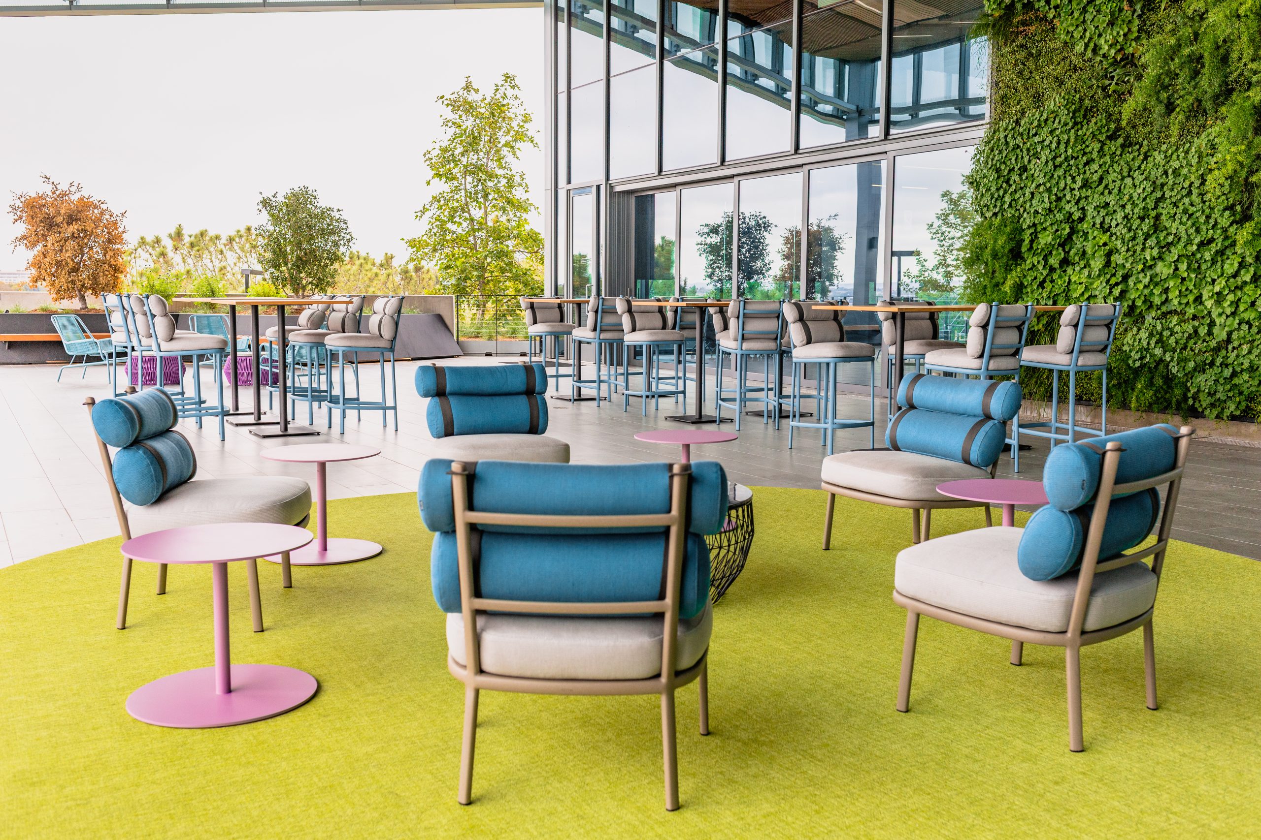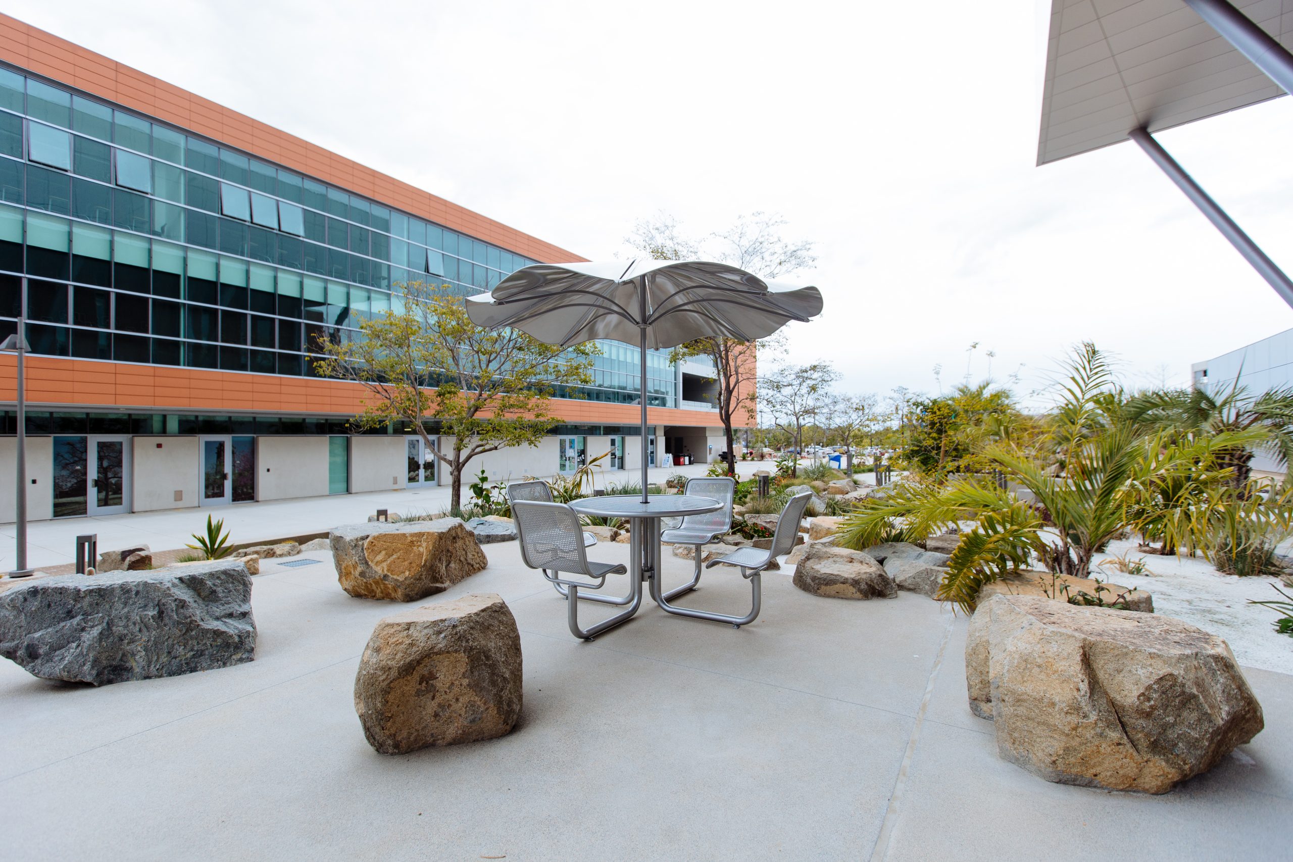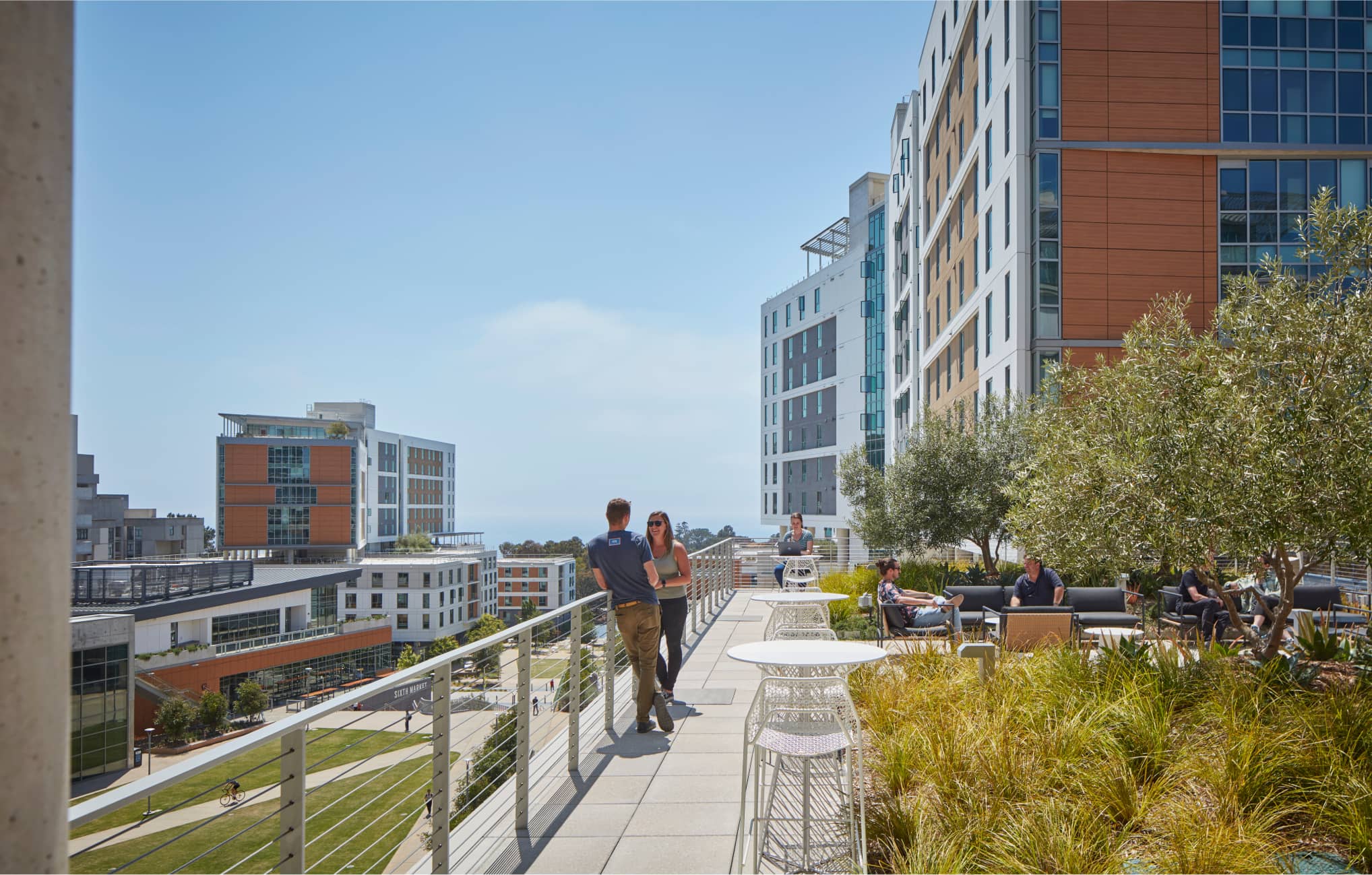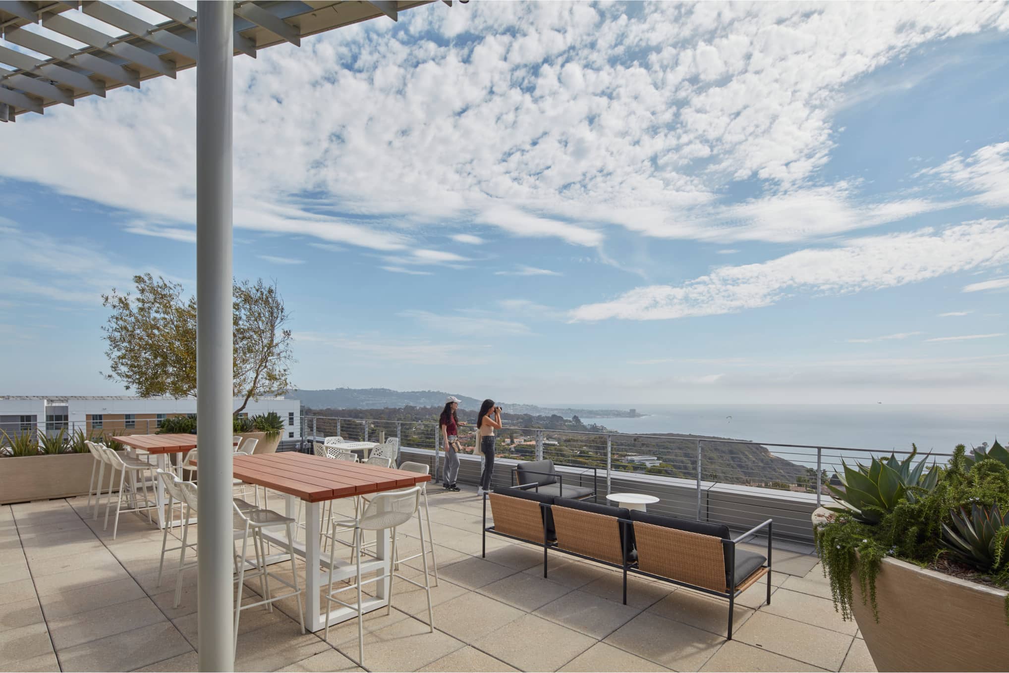 The Hyphn furniture and technology design teams collaborated closely with Longfellow and various partners to plan, create, and source a comprehensive range of indoor/outdoor furniture and technology elements for a fresh tenant amenity area.